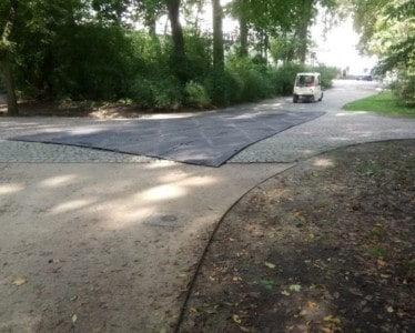 Zabezpieczenie nawierzchni w postaci kostki brukowej w Łazienkach Królewskich w Warszawie.