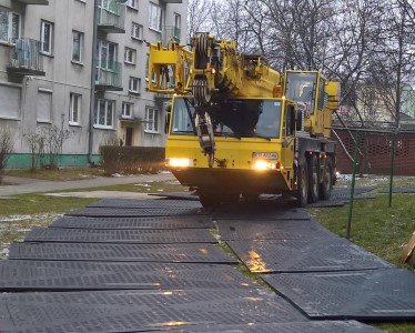 Zabezpieczenie nawierzchni pod montaż masztu GSM w Kielcach w grudniu 2016 r.